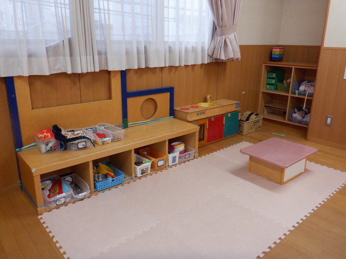 部屋には玩具が充実していて、おままごとコーナーやプロック、机上遊びなど、それぞれのコーナーに分かれて遊ぶことができます。